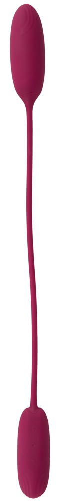 The RC Shaking & Vibrating Love Egg Duo by Sweet Smile surprises with 2 powerful bullets connected through a 31 cm long flexible silicone strap. One bullet shakes and pulsates, the other vibrates. Offering simultaneous vaginal/anal or external/internal stimulation when playing solo, as well as dual stimulation when playing as a couple.
