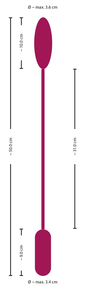 Shaking bullet: 10 cm long, Ø max. 3.6 cm.