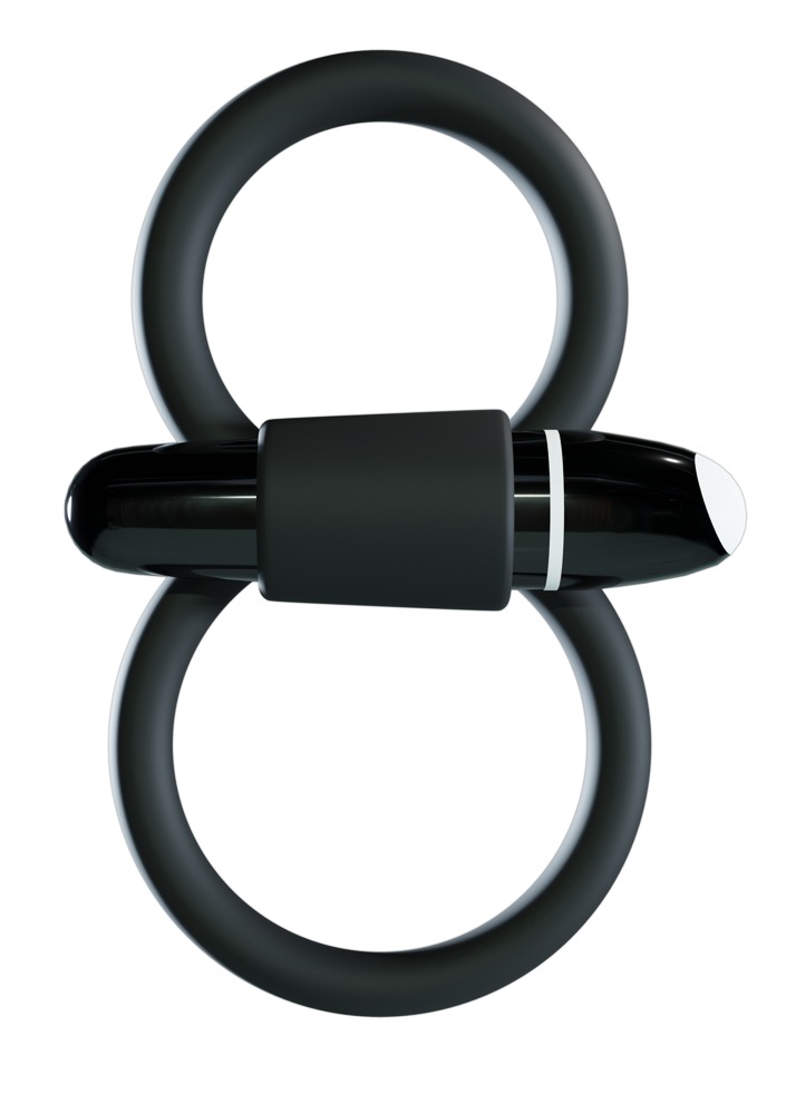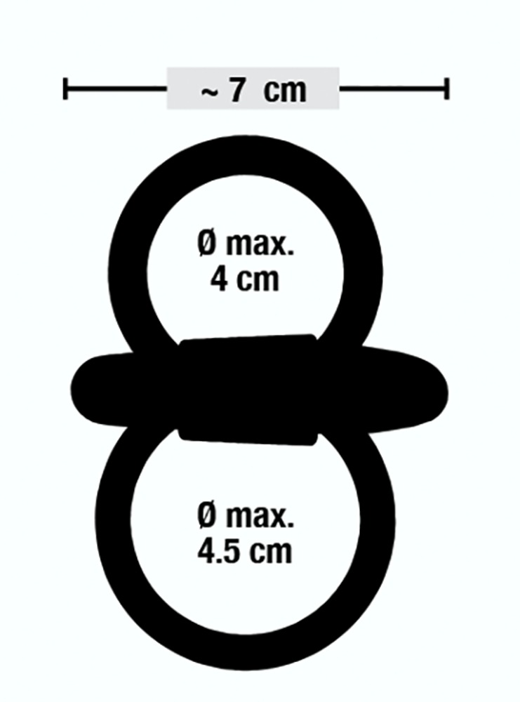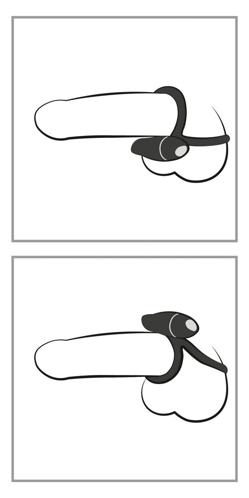 It isn´t just the penis that is the centre of attention in this ring but also the testicles, which are erotically encircled. The penis/testicle ring is made of two flexible rings (Ø 4 and 4.5 cm): the penis is pushed though one of the rings and the other ring is pulled over the testicles so that they are slightly lifted. The rings are joined together by a loop that sits between the bottom of the penis and the start of the testicles. A mini vibrator can be placed in this loop. The rings create a blood congestion effect making the erection harder and last longer and the toy´s tight fit and slight pressure on his crown jewels provide tremendous stimulation. The stimulation is increased again when the vibrations of the mini vibrator are turned on. These vibrations make the erections even harder and even longer lasting.