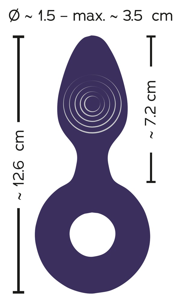 Complete length 12.6 cm, insertion length 7.2 cm, Ø 1.5 cm - 3.5 cm.