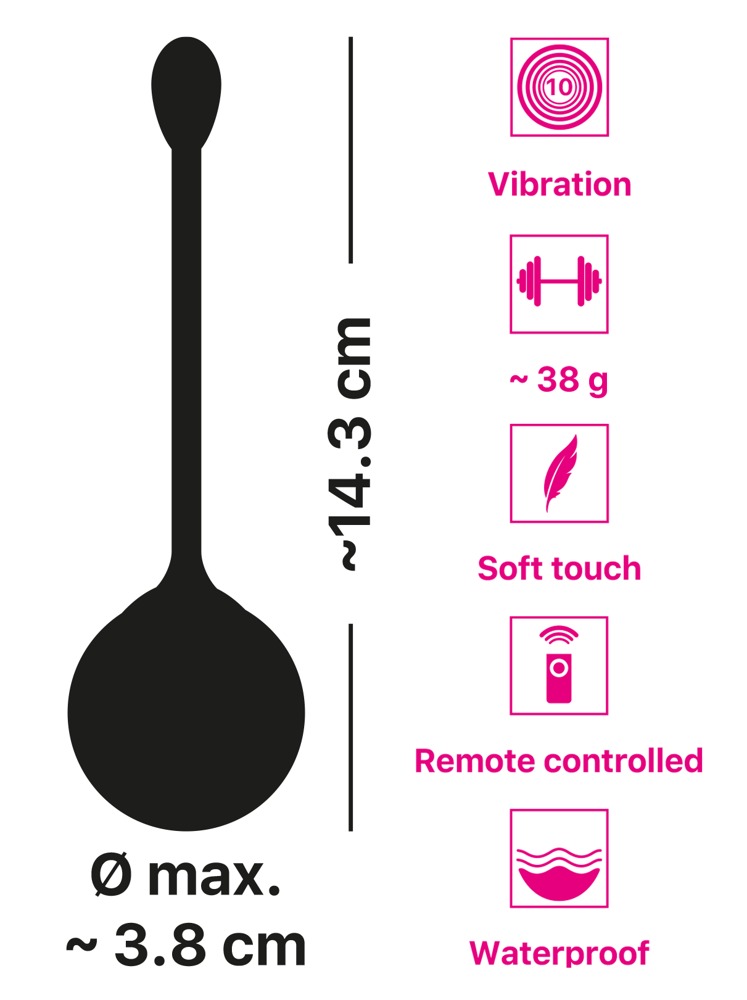 This vibro-ball is perfect for beginners who are trying out vaginal training because it only weighs 38 g. It is easy to insert and covered in skin-friendly, soft silicone which feels great against the skin during pleasure and training.