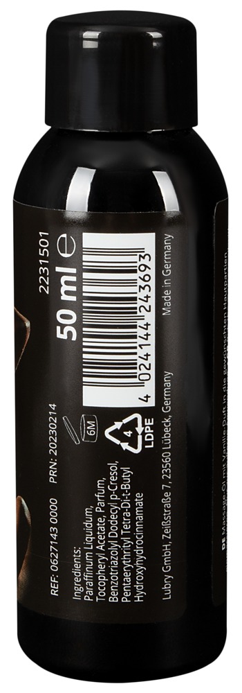 High-quality erotic massage oil made in Germany! Valuable ingredients gently nourish the skin and help make it velvety soft for long-lasting massages. The stimulating, seductive vanilla scent awakens hidden (erotic) fantasies… Water-soluble. It can be washed off.