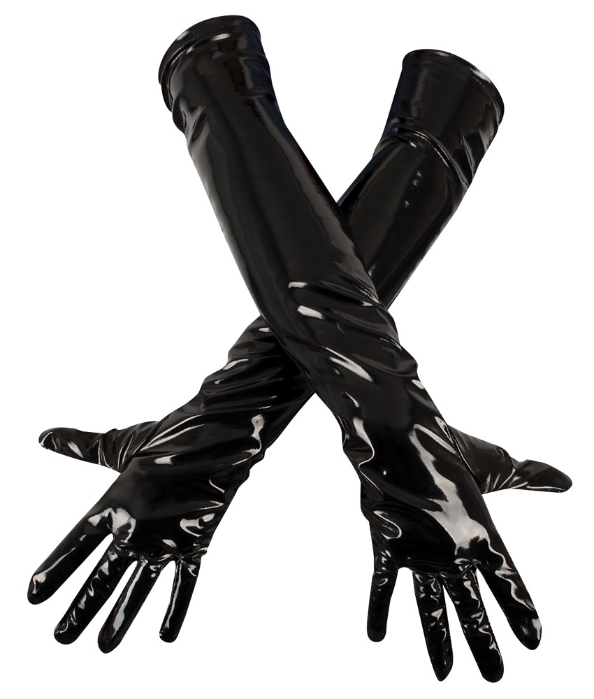 The long gloves from Black Level are made out of shiny black vinyl. With stretchy inserts for a perfect, skin-tight fit that's still comfortable to wear.